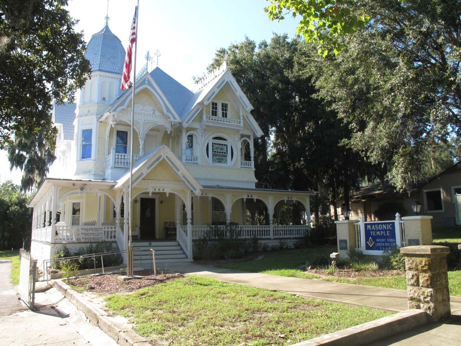 The Donnelly House was built in 1893 in Mount Dora, Florida, by John P. Donnelly, originally of Pittsburgh, PA. Mr. Donnelly had moved from Pittsburgh to Mount Dora in 1879 and became the town’s first mayor. This house was built years later and was designed by the architect George Franklin Barber, as a mail order house in the Queen Anne style. He was very famous at the time for his mail order houses which were sent to various towns and cities across the nation. Currently this house is the home of the Mount Dora Lodge No. 238 F&AM, where they host meetings and gatherings of the club.