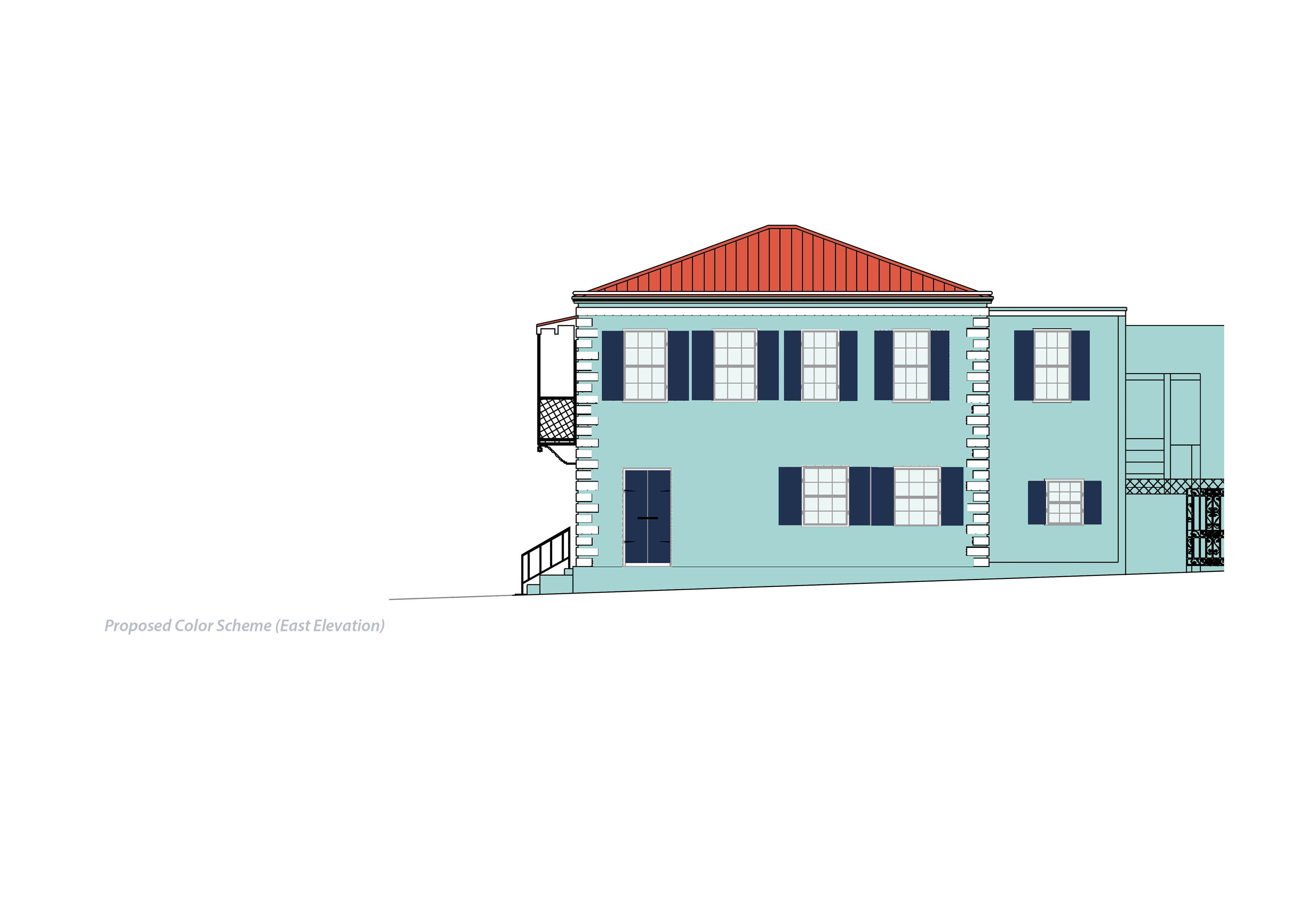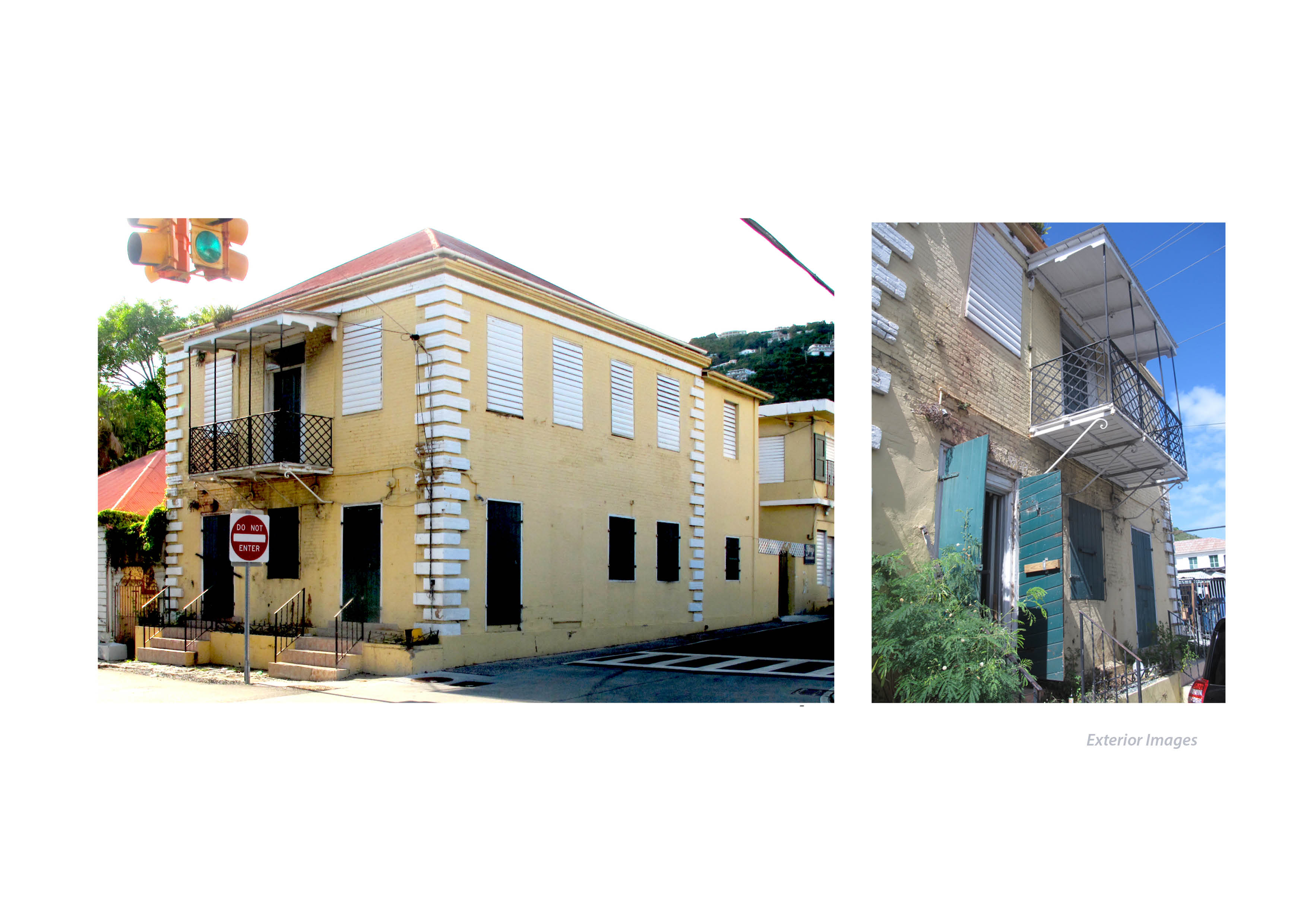 The first known records for this property date back to 1831, after which the property was transferred several times until 1883 when it came into the possession of the Blake Family where it remained for several generations until Alfredo Lima purchased it from the Blake’s in 1958. The building is a two-story, masonry, structure facing south on the southernmost corner of Dronningens Gade and Bjerge Gade, in the historic district of Charlotte Amalie. The building has been vacant for the past decade. The exterior of the structure has suffered moderate water damage. Through careful research and collaboration with the local SHPO, the building will be rehabilitated, retaining as much historic integrity and character as possible.