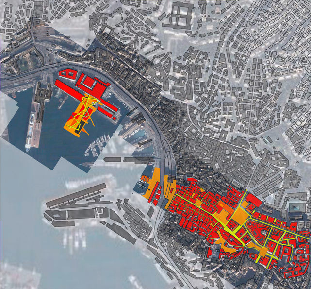 Within a city of medieval urban structure, nothing is planned, coordinated, or formalized. The city gradually generates itself by re-use, not by replacement. Thus Ponte Parodi is a crucial tool for reutilizing the current conditions of the port, as well as creating an active space of open spaces that can bridge the two areas of the city.